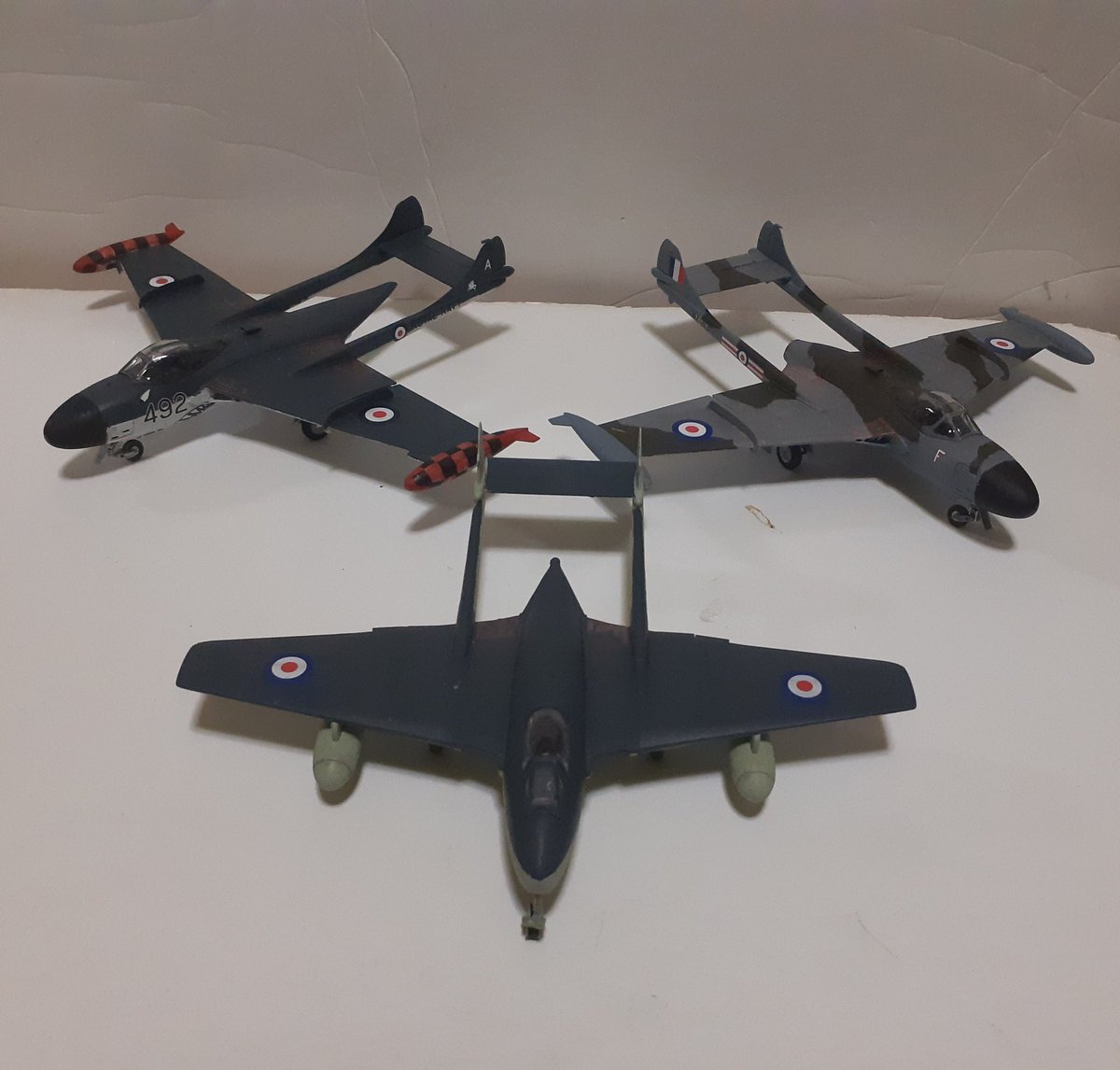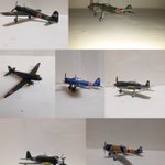 #今月作ったプラモ晒そうぜ 単座ベノム(グレンコ1/48) 複座ベノム、シーベノム、シーバンパイア(全部サイバーホビー1/72) C47&零式輸送機(ハセガワ1/200セット) 7月は合計6個 仕事が忙しかった割には結構作れた😄 てかほとんどがバンパイア~ベノム系列………😂