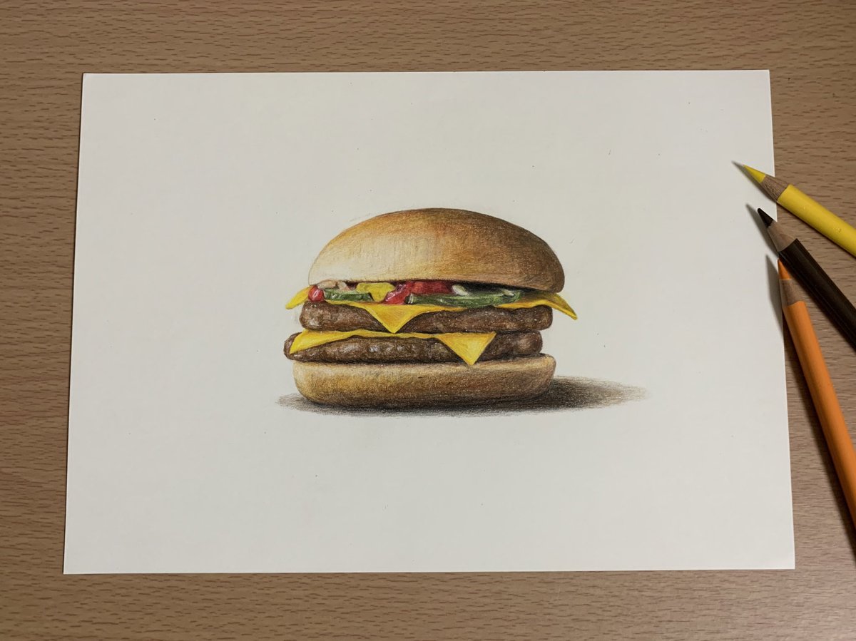 色鉛筆でこういう絵を描いてます! まだまだ模写修行中ですが、良ければフォローとRTよろしくお願いします!! #絵描きさんと繋がりたい #イラスト好きな人と繋がりたい #私の作品もっと沢山の人に繋がれ #ホグワーツ城 #プーさん #ダブルチーズバーガー #トイストーリー #模写 #色鉛筆画