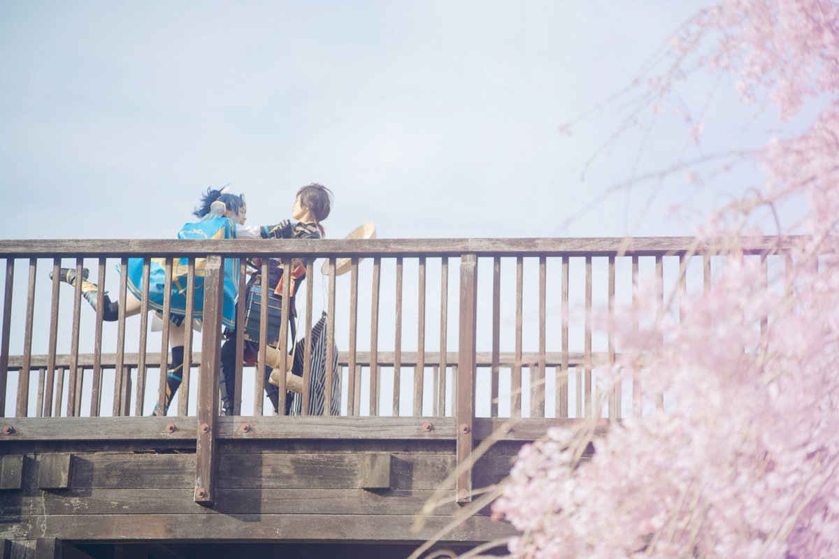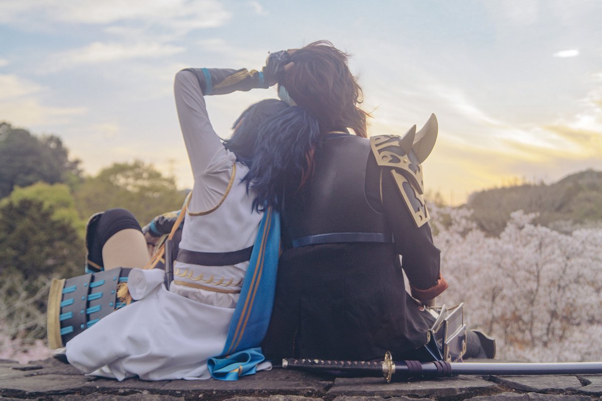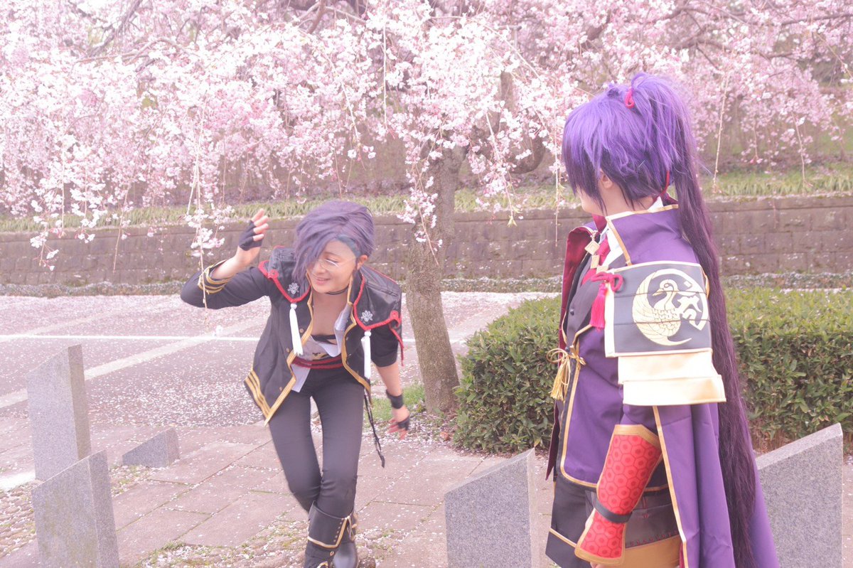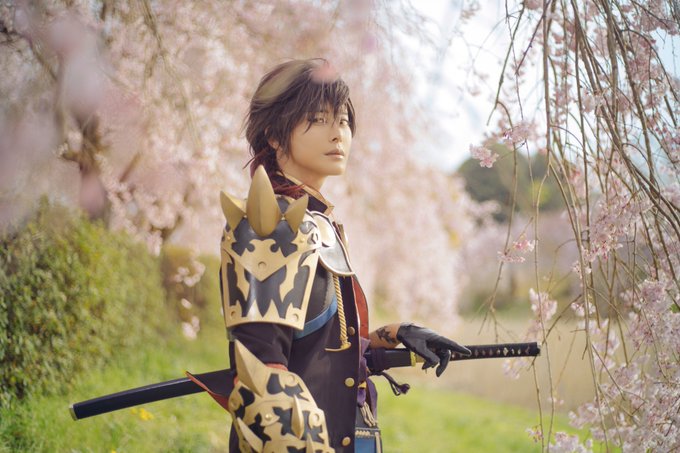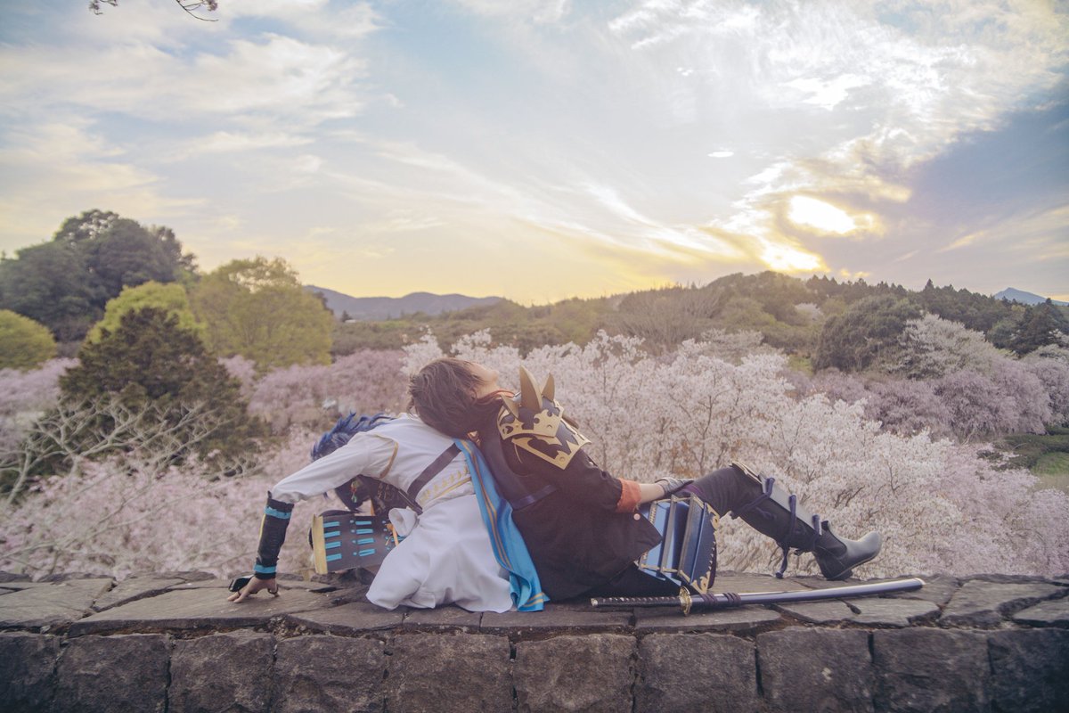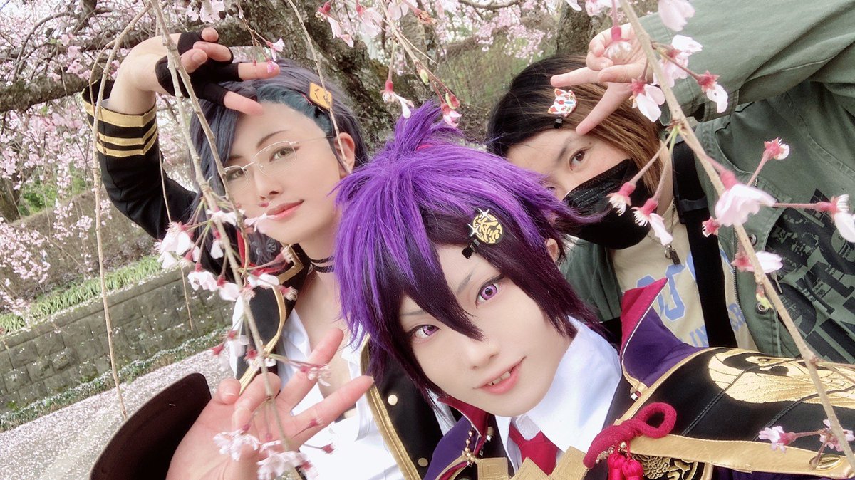 Cosplay⚠️刀剣乱舞 おそほ❗昨日は上杉併せで遊んでもろたよ~❗ 誕生日サプライズまでして貰って幸せでした✨尻を撮るから後ろを向いて並べという謎の指示に素直に従って振り返ったらケーキあったの🤦😂 河津桜も終わりかけだったのにカメラマンの腕にかかるとちゃんと桜いっぱいなのしゅごい twitter.com/i/web/status/1…