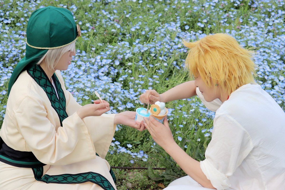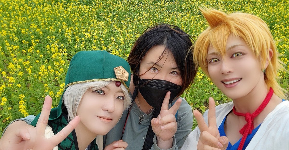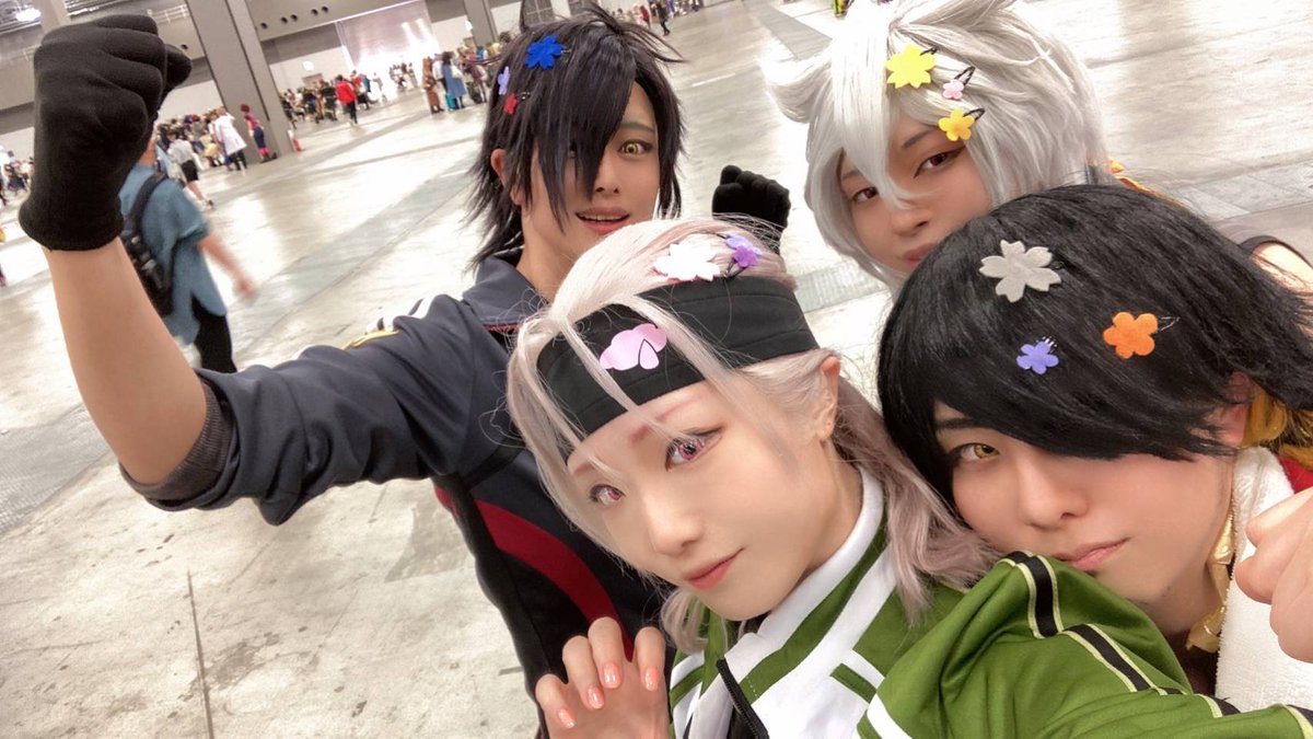 Cosplay⚠️改めまして、スパコミ1日目、差し入れたくさん有り難うございました~❗ 人様のスペースですしなるべく気配を消していたのですが(人見知り発揮)私にまでお声掛け下さる優しい神ばかりで感激でございました🙇 廻人さんが作ってくれたわんぱくのお花、スペースの皆で着けたのかわええやろ💠 twitter.com/Ksuke_cos/stat…