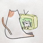 テレビ #アナログ #イラスト #猫 #ペン #色鉛筆