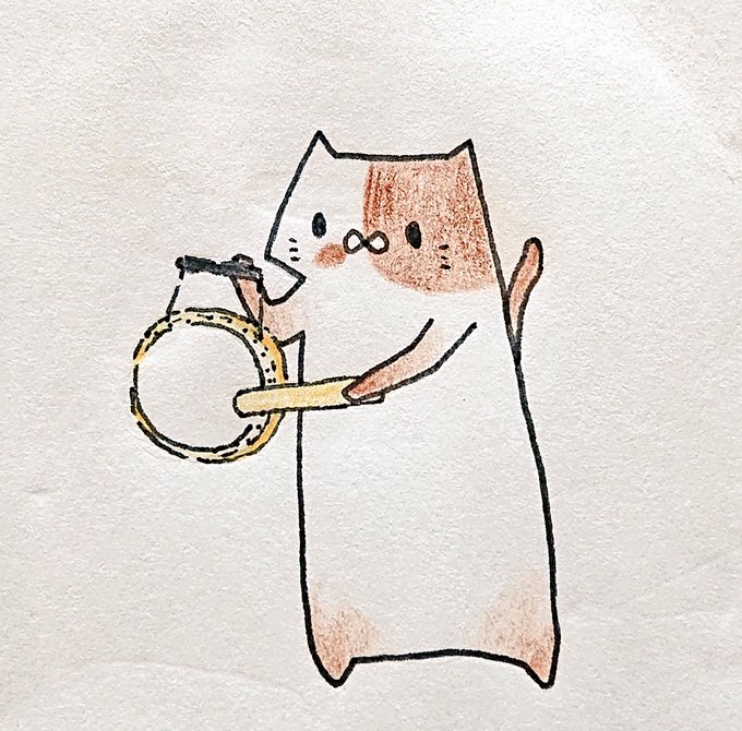 太鼓 #アナログ #イラスト #猫 #ペン #色鉛筆
