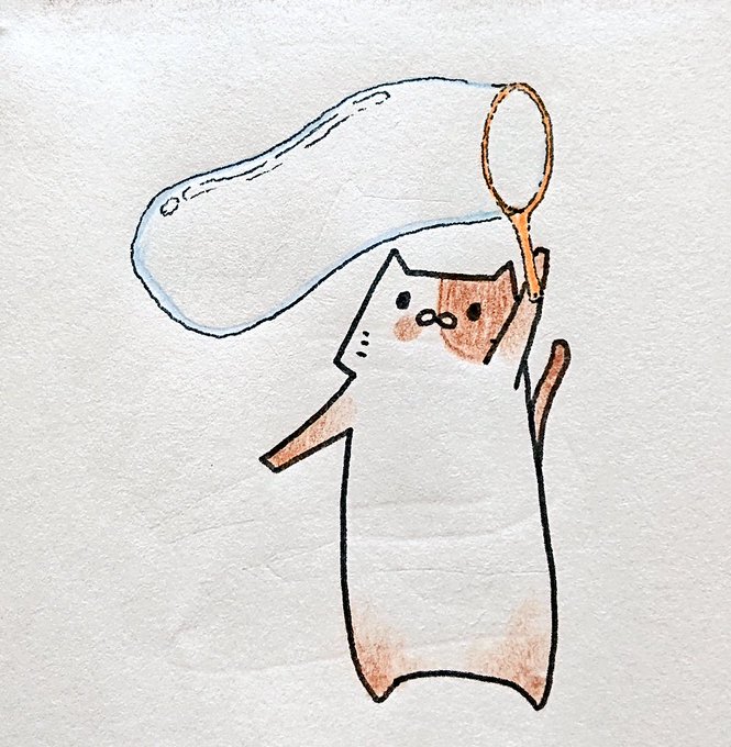 1 2 シャボン玉 #アナログ #イラスト #猫 #ペン #色鉛筆 23/07/09 03:37