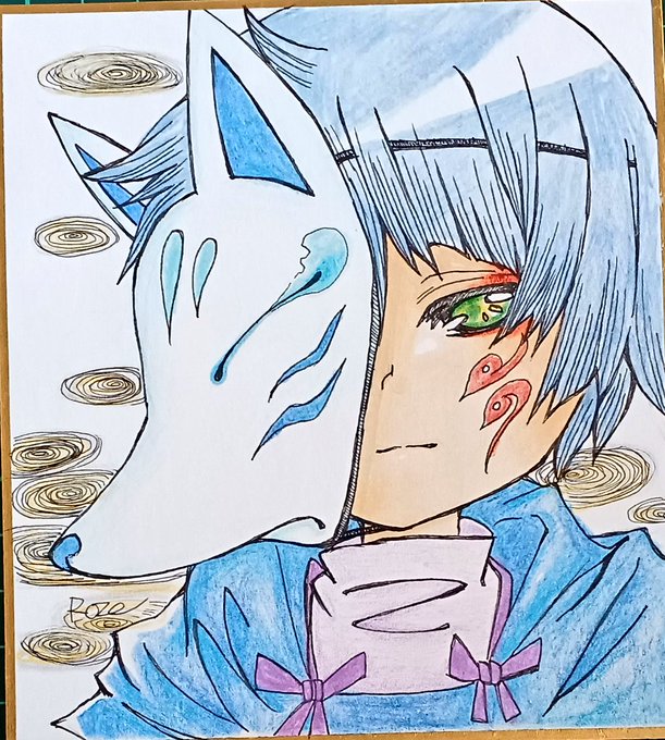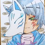 #オリジナル #コピック #色鉛筆 #狐面 男の子。