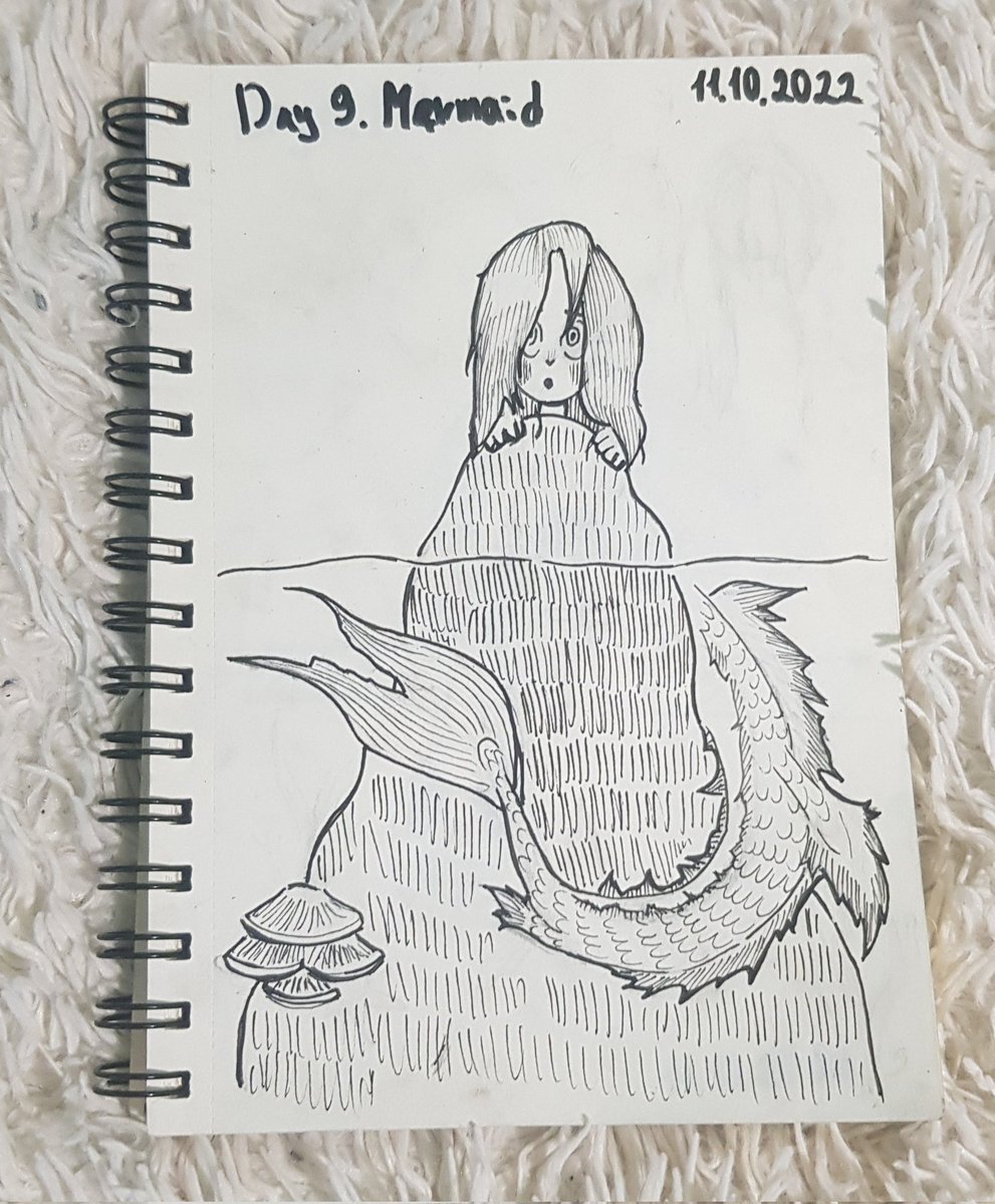 Прршу прощения за опоздание, учёба совсем задавила, планирую остальные сегодня сделать, но ничего обещать не могу Хотела сделать классную задумку, но скетчила ещё вчера на паре, и сил придумывать что-то крутое не было #inktober #inktober2022 #magicandcratures #inktoberday6