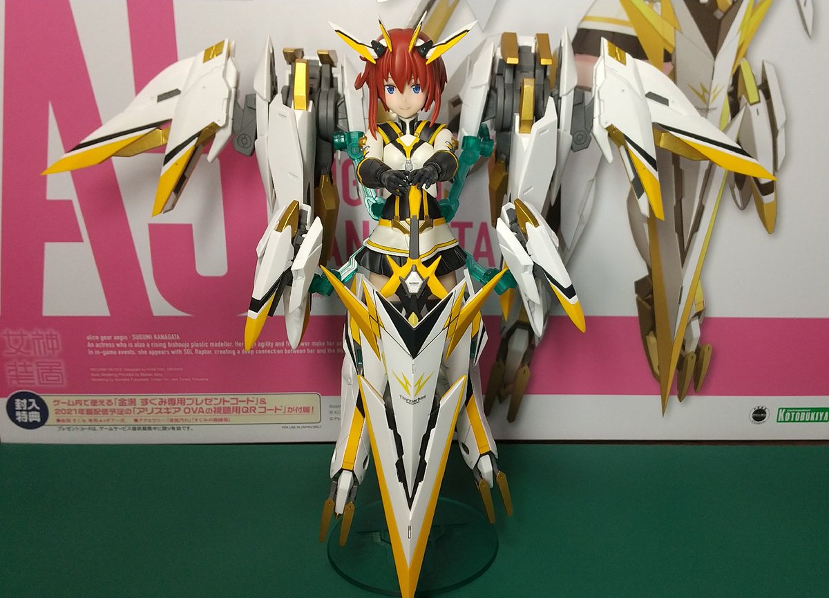 9 62 かなり日数が掛かったけどなんとか完成。塗りが甘い箇所もありつつ納得の色味になったから、がんばってよかった。 #アリスギア #メガミデバイス #金潟すぐみ 21/10/18 19:21