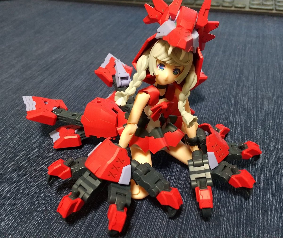 2 2 部分塗装とつや消しだけした赤ずきんちゃんだけど、公式のポーズさせるとスカート広げてるみたいでかわいいんよね。 #メガミデバイス 23/01/27 23:09