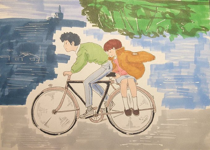 Mimi wo Sumaseba 2 #イラスト #illustration #practice #アナログ #cute #light #Landscape #aoi #blue #sunset pixiv.net/artworks/10135…