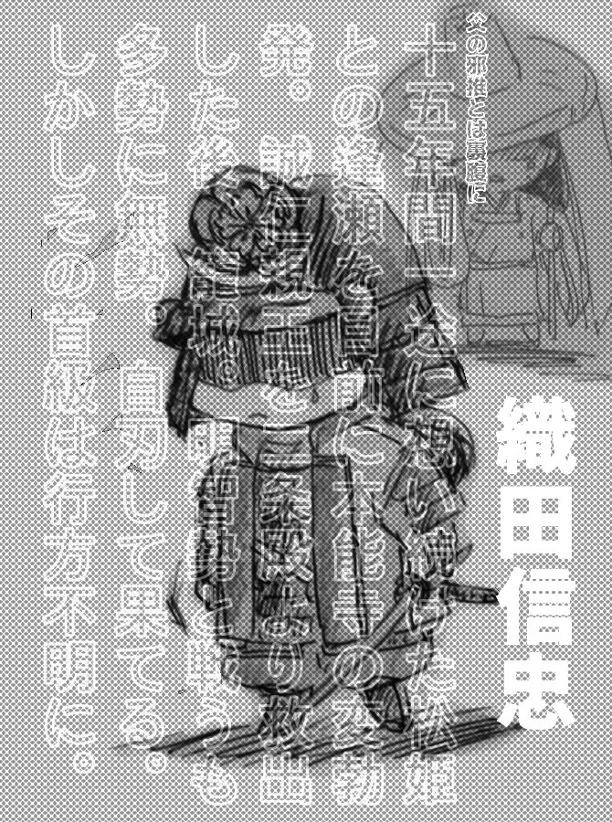 16 36 6月21日。 新暦本能寺の変の日なので、過去絵再掲 #本能寺の変2021 #織田信長 #明智光秀(麒麟) #織田信忠 21/06/21 07:09
