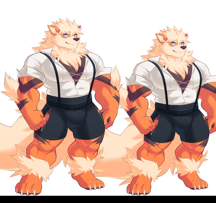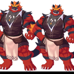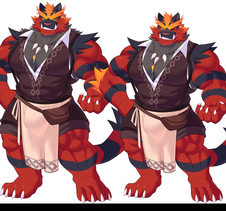 WIP design for #FlamingFlagon, owner of the local bathhouse~ Have not settle on his name and full outfit yet, he will have more cloth (probably)💦