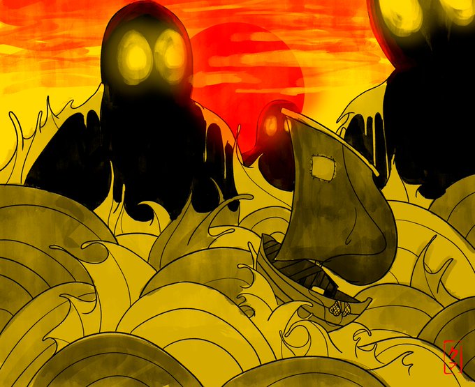 Inktober dia 14: Bake-kujira Una ballena fantasma que guarda rencor y odio hacia los humanos tras su muerte. #yokai #inktober #bakekujira