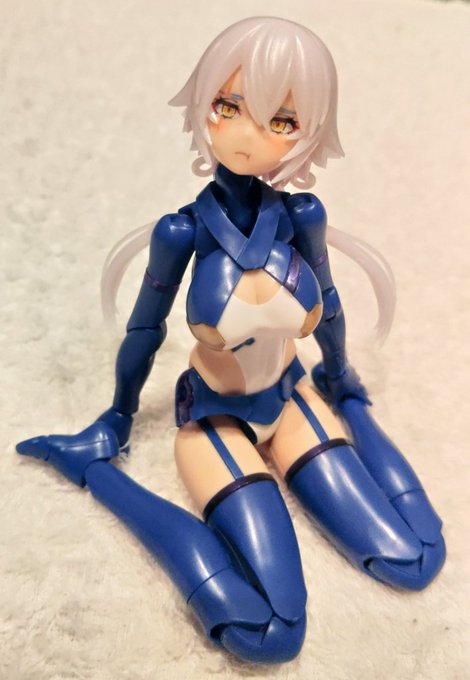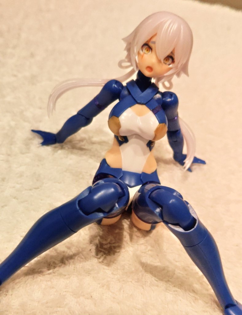 むっちゃん素体パチ組みまいた。 うーん、美人さんだ🙂 別カラーに塗り替えるつもりだったけど塗装済の体のライン見てたら塗り替え大変そうだな、と。さて、どうしたもんだか...🤔 #メガミデバイス #アリスギアアイギス
