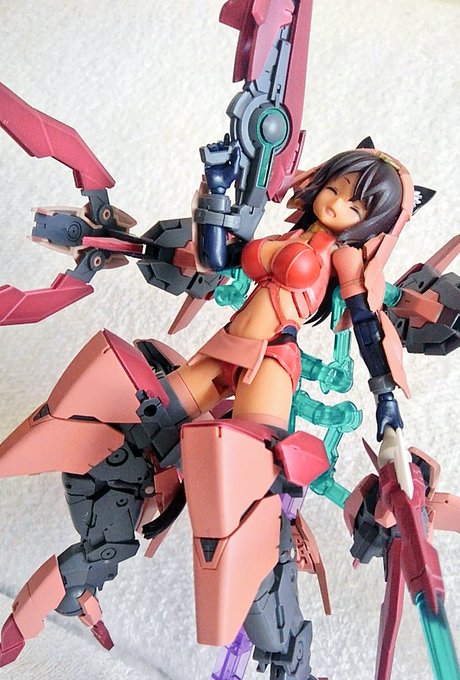 むっちゃんギアできた。 長ものに質量兵器、派手で良い。 ケモ脚もまた良し。 いやしかしブキヤモデルは素組みでもパーツ毎の密度が濃くてカロリー高いやね。甘いものが欲しくなる。 #メガミデバイス #アリスギアアイギス