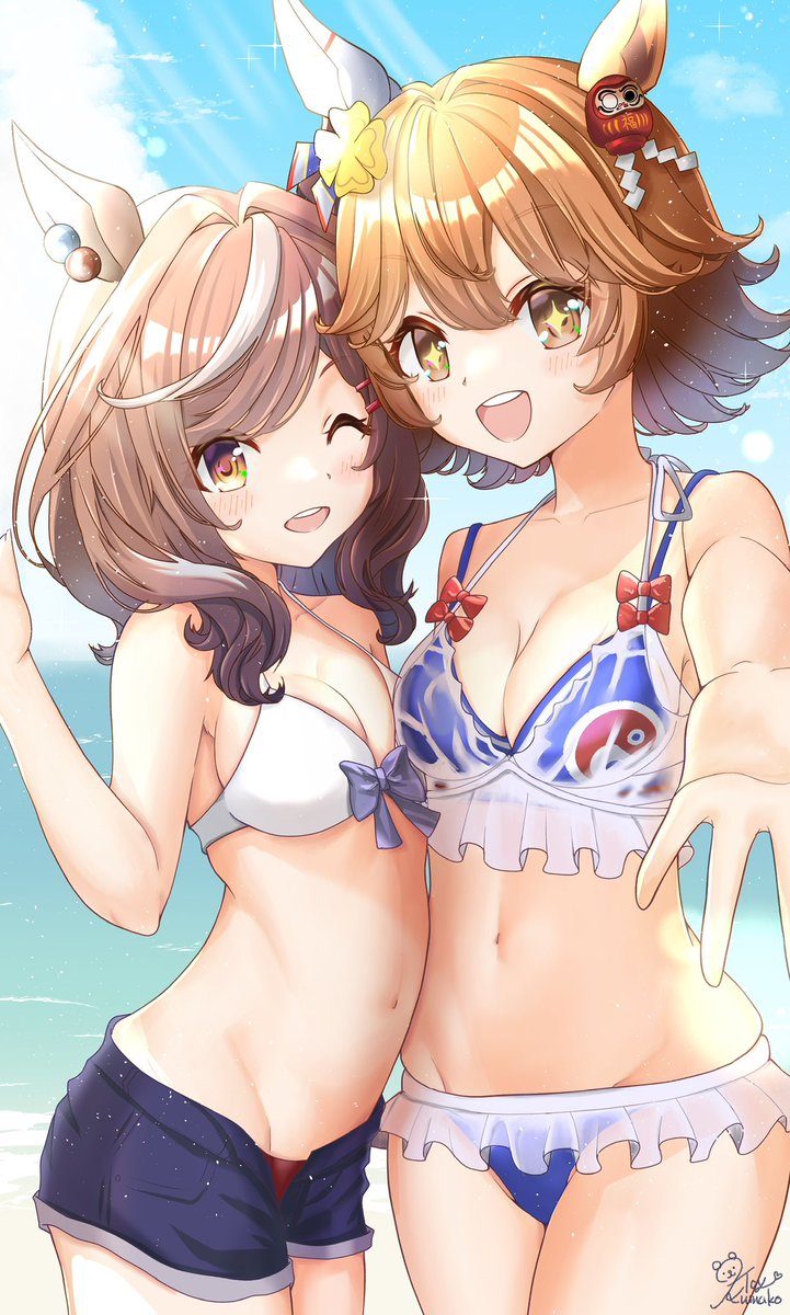 夏なので初めての水着イラストで最推しのフクちゃんとマチタンを描いたら初の4桁いいねを貰えてびっくりでした❗😍 このイラストから水着の依頼をしてくださった方の為にブラッシュアップ頑張ってます❗ #軽い気持ちで描いたら思った以上に反響があった絵
