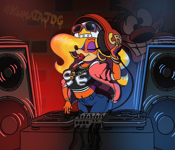 A recent commission of Tawna Bandicoot as a DJ! I had free reign on the outfit and tried to go with something that was very 90s hip-hop #CrashBandicoot #CrashBandicootFanart