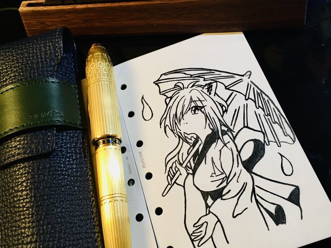 数ヶ月前は万年筆やボールペンでちびちびと描いていました。 『我、天狐なり。菫毛九尾の天妖なり。』 何処でもササっと描けるのはアナログの魅力ですよね。 #絵描きさんと繋がりたい #イラスト好きな人と繋がりたい #秋の創作クラスタフォロー祭り #みんなで楽しむTwitter展覧会 #天月詠玉藻
