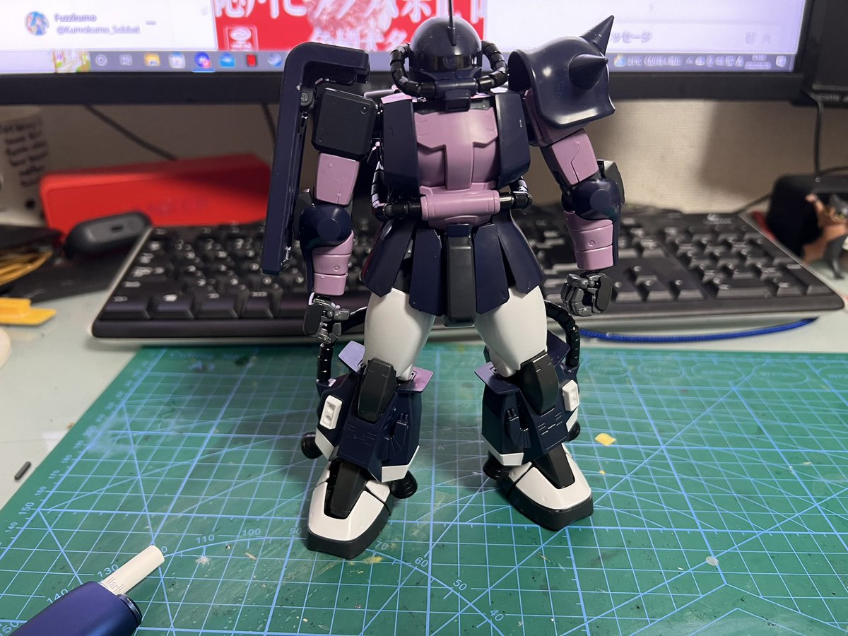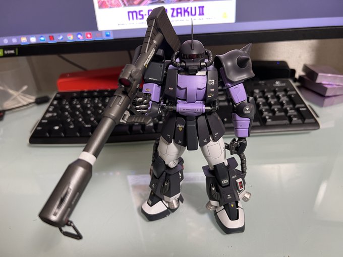 やっと机片づけて撮影しました。MS06RザクⅡです、小学生のころMSVのパッケージに惚れてからずっと好きな機体だったので作れてうれしい。塗分けめんどくさかったけど頑張りました。かっこいい!#ガンプラ #ガンプラの画像を貼るとRTされると聞いて #ガンプラ好きと繋がりたい #gundam
