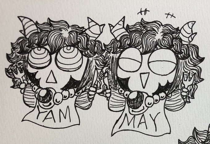 ルヌ と ニセルヌちゃん #絵描きさんと繋がりたい #イラスト #ペン画