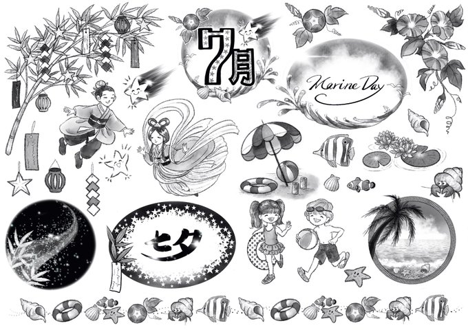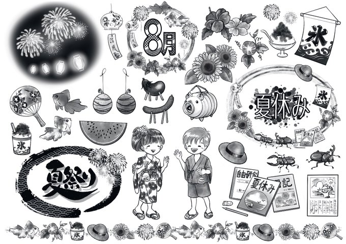 8月のイラストセット、モノクロの方が出来上がりました。今回はちょっと早めに出来上がりました! これからイラストACにアップします。 カラーもまもなく! NFTはこちら♡Adam by GMO adam.jp/stores/kunshit… #イラスト #イラストAC #デジタルアート #イラスト好きな方と繋がりたい