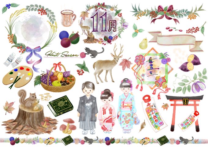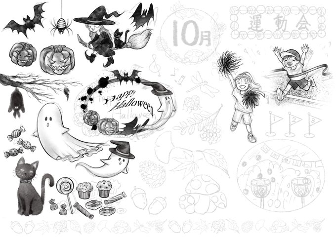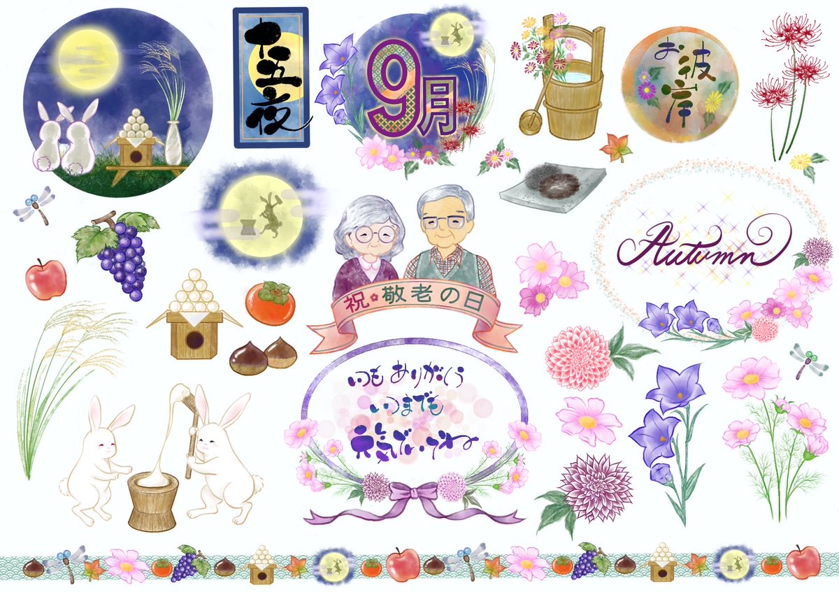 9月のイラストセット、カラーの方も一ヶ月前までに出来ました! でも明日はもう8月・・・。10月を描かないと・・(汗) NFTの方も描きたいんだけど・・・ NFTはこちら♡Adam by GMO adam.jp/stores/kunshit… #イラスト #イラストAC #デジタルアート #イラスト好きな方と繋がりたい