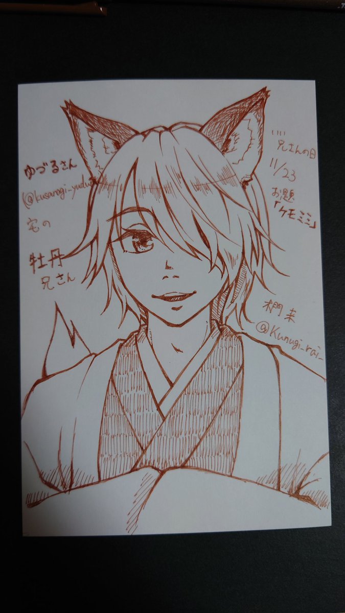 #ゆづる作品深夜の真剣お絵描き60分一本勝負 #ゆづる作品ファンアート お題「ケモミミ」&いい兄さんの日なのでこのお方しかいないなと牡丹兄さん描かせていただきました。 私の技量では色塗りまではいかないのでペン画ですが頑張りました!