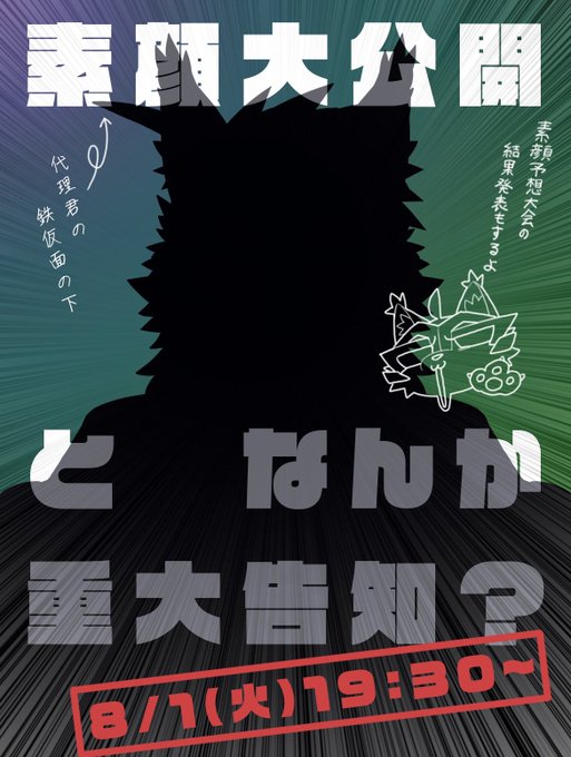 8/1(火)19:30~ X スペースにて #くらたろ素顔予想大会 の結果発表及び素顔公開をします 少し早い時間ですが録音もしておりますので各々で楽しんでいただければ幸いです あとなんか告知 新代理君って結局何なん?
