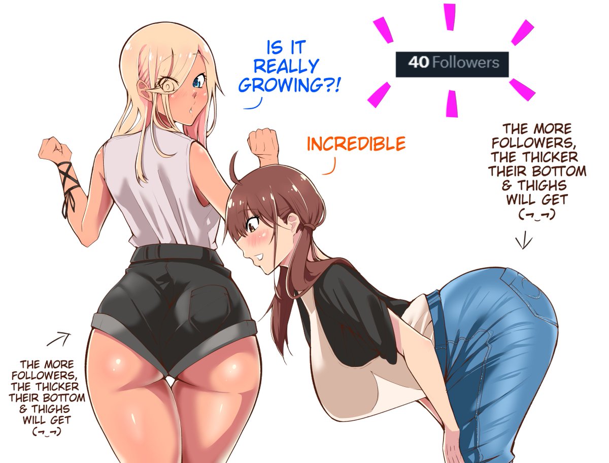 Thank you for 40 followers ༼ つ ◕_◕ ༽つ Yes, it's actually growing (⌐■_■) Keep in mind that since there are two of them, the followers will be divided between them, so you will have to work a little harder to beat them. OC Naive girl & ero gal