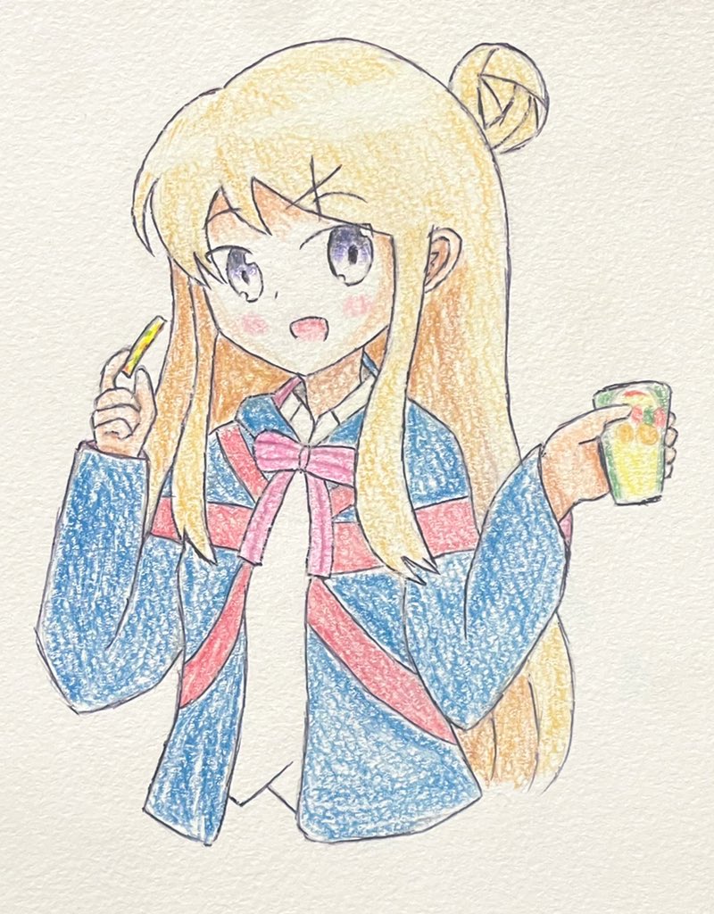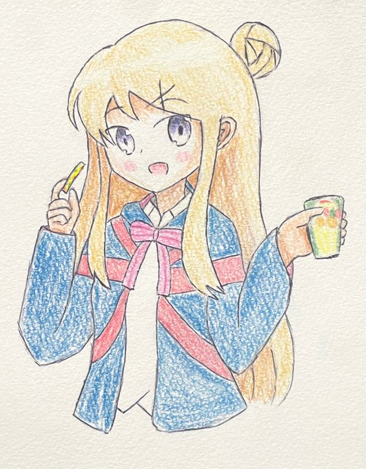 42 124 #きんいろモザイク版深夜のお絵かき60分一本勝負 国民的なじゃがいものお菓子を貰ったカレン 22/05/28 23:03