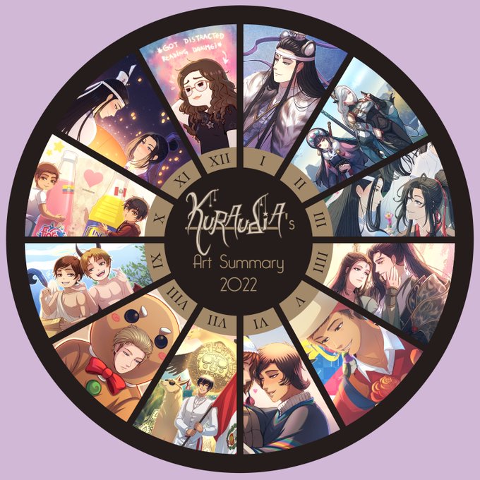 Mi resumen artístico de 2021~ 🖌️🎨✨ Este año dibujé más de lo usual y pude hacerlo todos los meses #PlotTwist. Como siempre gracias a las novelas de MXTX y Latin Hetalia por la inspiración~ 💕 ¡Feliz año nuevo gentita🌟🎉 les deseo mucho éxito y salud en el 2022! #artsummary2021