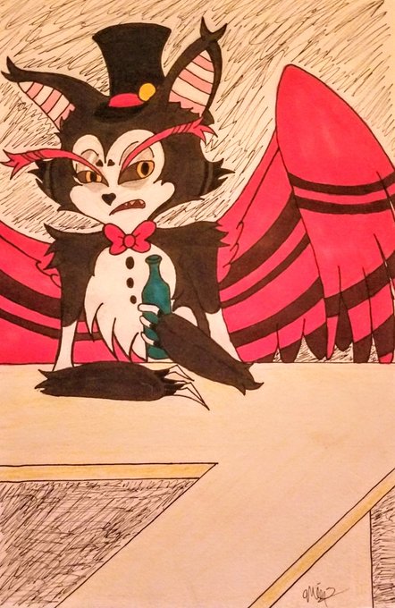 Just a grumpy kitty and his booze. Day 6 - Husky @HazbinHotel #HazbinHotelFanart #HazbinHotel #inktoberday6 #Inktober #Inktober2019 #husky #husk #art #drawing #drawings