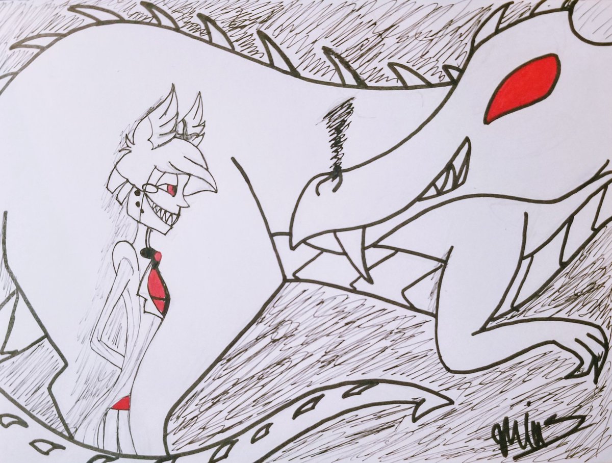 Deadly staring contest! Day 12 - Dragon @HazbinHotel @inktober #HazbinHotelalastor #HazbinHotel #Alestor #Inktober2019 #inktober #day12 #Dragon #drawing
