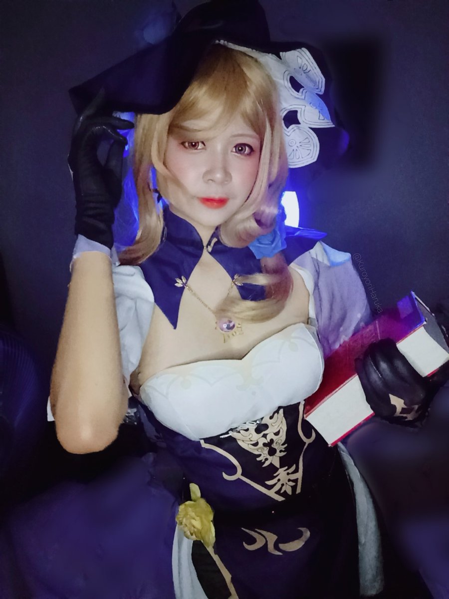 [#cosplay] Did a costest of Lisa from Genshin! 💜 I hope everyone is having fun at Inazuma, but do come by sometime to visit the Knights of Favonius Library too! 😘 #GenshinImpact #原神 #cosplayer #GenshinImpactCosplay #Lisa