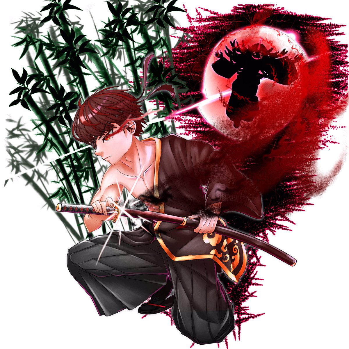 鬼灯 迅夜と妖刀•鬼刃残月 #イラスト #オリキャラ #うちの子 #絵描きさんと繋がりたい #イラスト好きさんと繋がりたい