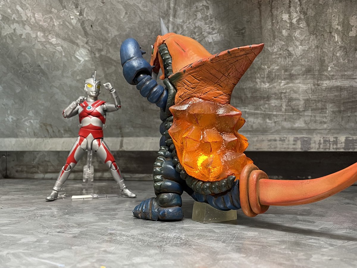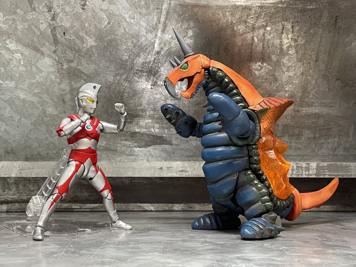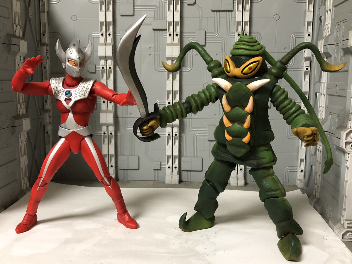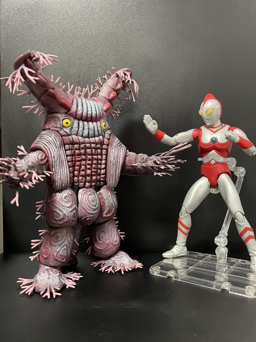 中華料理屋恩珍軒 夏の新作 ウルトラマンエースより一角超獣バキシムが完成しました! 関節技球体ジョイントを使用した可動式 サイズは、SHフィギュアーツサイズとなっています 頭部、甲羅はクリアレジン製です 10000円にて販売します! #WF2023S #ワンフェス2023夏