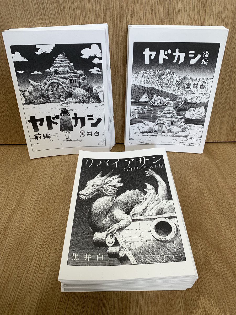明日5/5(金)コミティア参加予定。 「リバイアサン」WEB公開時に自主的に告知バナーをアップしていたんですが、それ用に新しく書き下ろしていたイラストをコピー本にまとめたものを頒布予定。 あと既刊の「ヤドカシ」も。 (サークルカットに書いていたのは間に合わず) #コミティア #COMITIA144