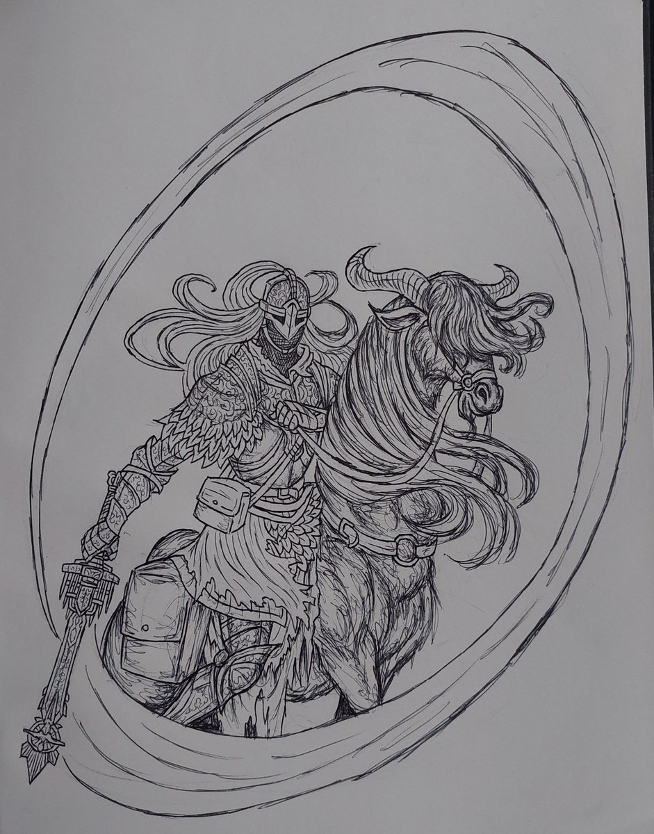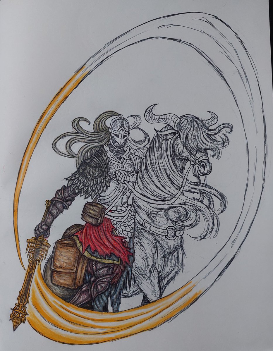 "The Tarnished" It's him! The protagonist from that game anyone knows about, John Elden Ring! With his famous phrase "always Maidenless, never Horseless" Started this with an stupidily impractical golden sword and we went full circle!😅 #ELDENRING #FromSoftware #EldenRingFanart