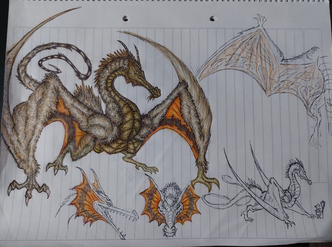 Wyvern Originally i wanted to go for a more Pterosaur-like body structure but there were a couple of things that didn't fitted well onto the idea of a dragon's cousin and an apex predator so i made some couple changes to that😅 #creaturedesign #monster #ArtistOnTwitter