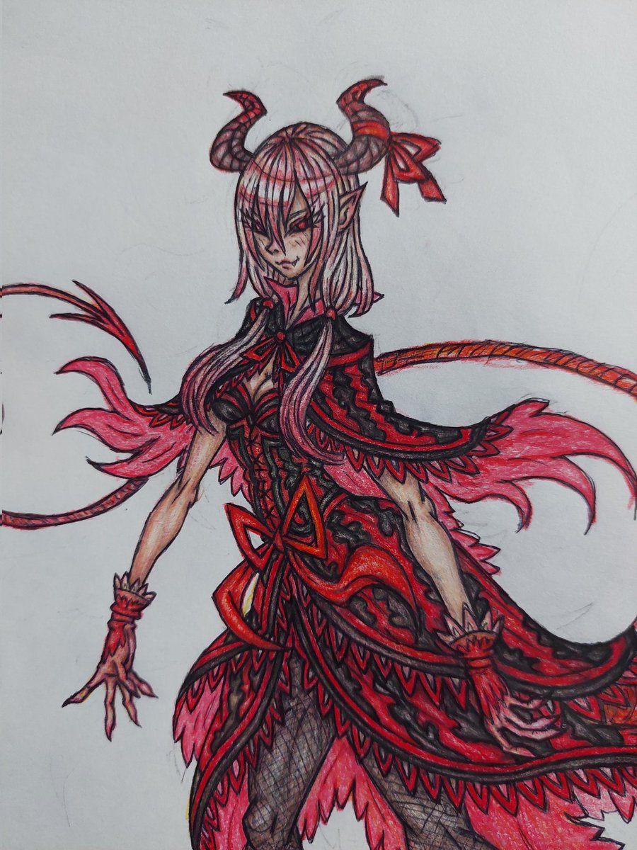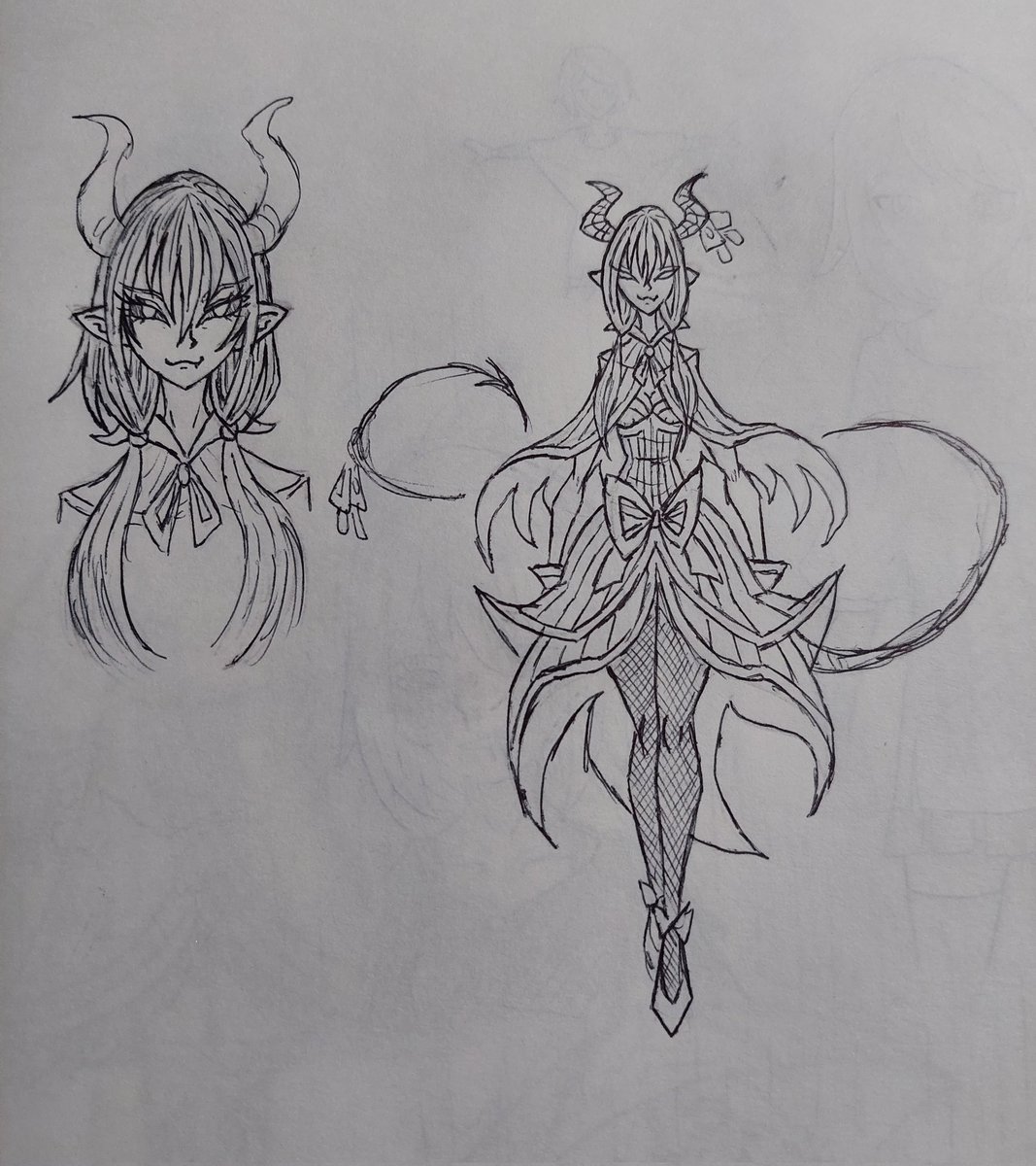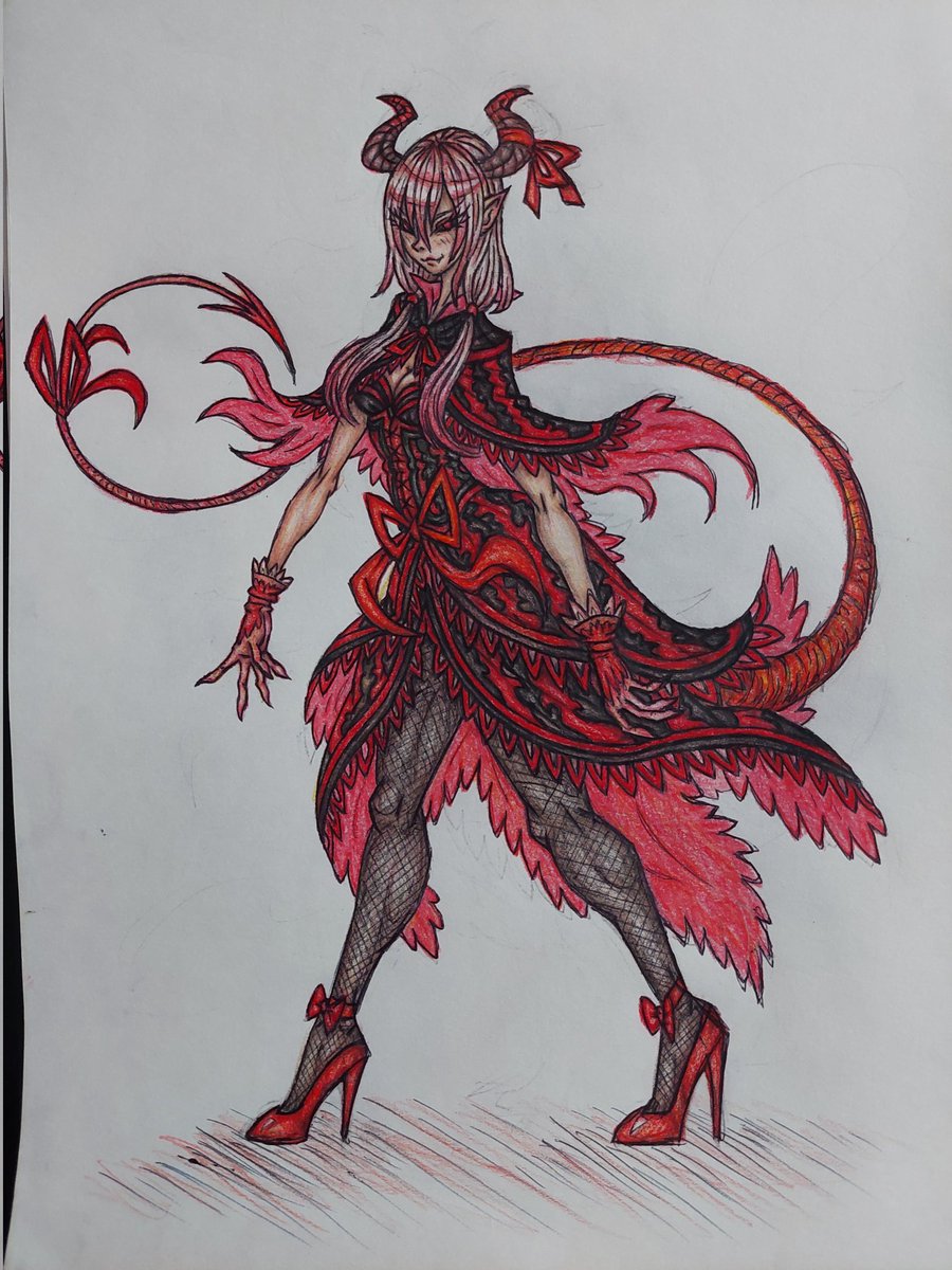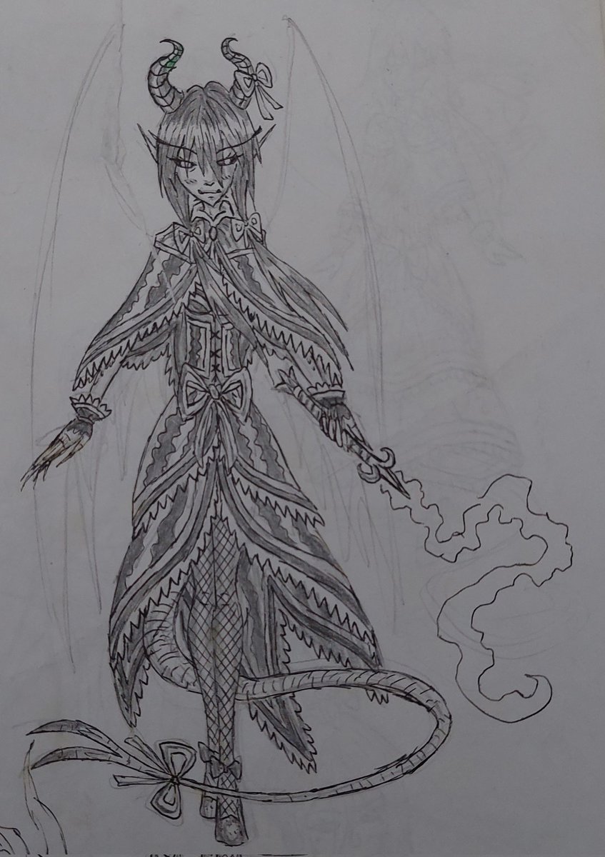 "The Modestly Dressed Succubus" Searching in my older folders i found this design i made in highschool of a Succubus and went on to redraw her! Her name was Erzebeth! Tell me what you think about her! #characterdesign #originalcharacter #ArtistOnTwitter