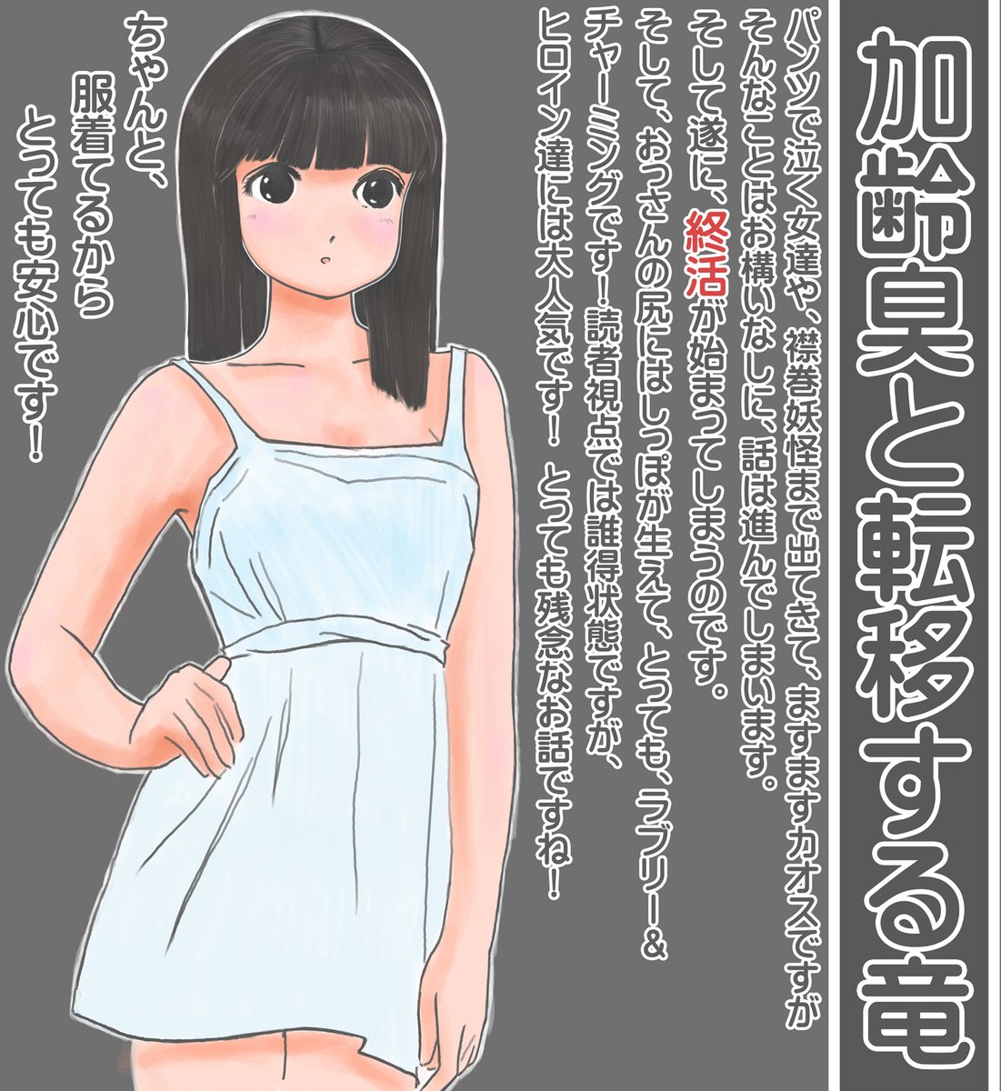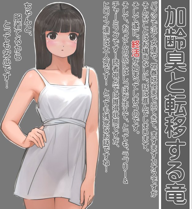 加齢臭と転移する竜 ncode.syosetu.com/n8898ej/794/ 400万pvありがとうございますm(_ _)m 今回は幼テーラさんの絵にしました。 リンクは幼テーラさんのお話ですが、おっさんは服を着せようと頑張りつつ、呪いに罹ったことに気付いてしまいます