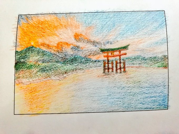 #アナログ絵 #色鉛筆 #広島 #鳥居 #厳島 美術のレポート…