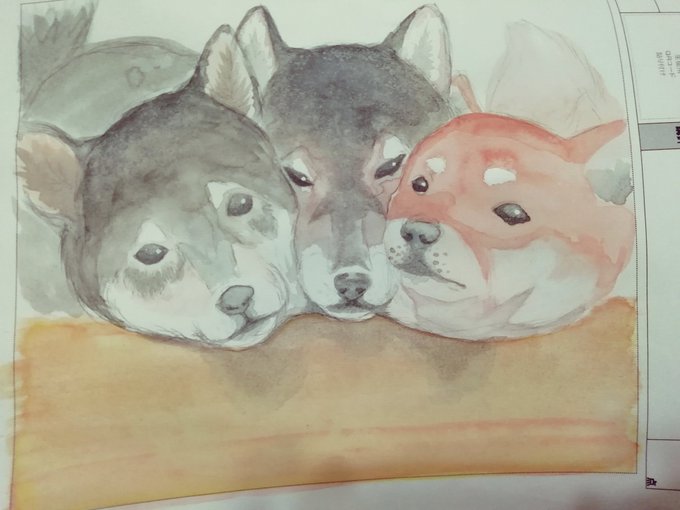 #水彩画 #柴犬 #アナログ絵 美術のレポート2…