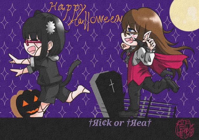 0 2 #ふくにゃこ #ハロウィン #ハロウィン2020 #イラスト ハロウィン🧟♀️🧛追っかけっ子!!! 20/10/31 12:57