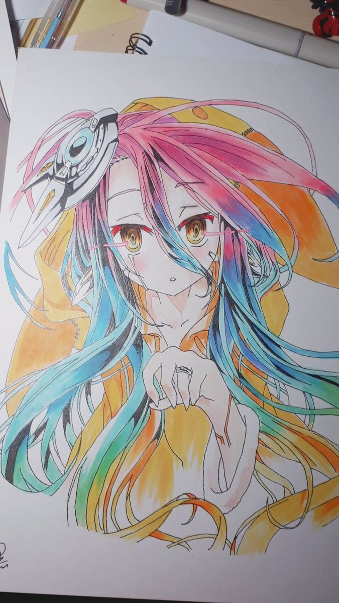 #絵描きさんと繋がりたい #アナログ絵描きさんと繋がりたい #ノゲノラ 最近描いたシュヴィに背景(ベタ塗り)つけて、すこーしグラデを強化したシュヴィちゃんです! やっぱりオリジナル(?)でグラデ入れると変になるなぁ、と思った感じです(´・ω・`) (最近全然上げれてなくてすみません(´・ω・`))