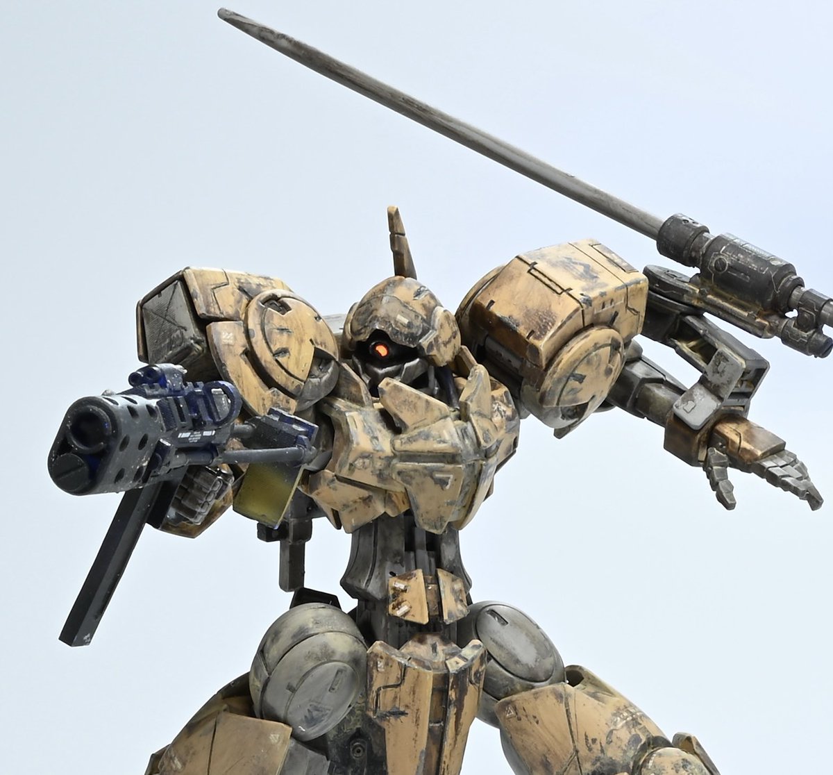 #ガンプラ #ガンプラはどんな自由な発想で作ってもいいんだ #水星の魔女 機体名_デザートハインドリー 完成しました! 地球内で活動する傭兵をモチーフにした機体で、 元は決闘にて使用され破棄されたMSをジャンクパーツにて再生 スラスター、メインカメラを代替品で補っている