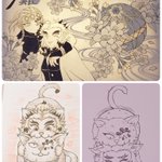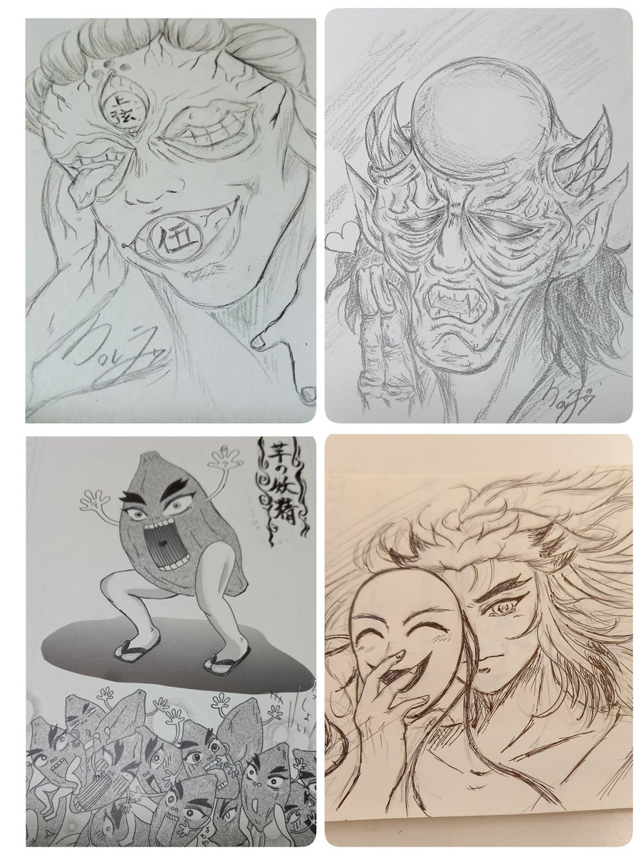 #今月描いた絵を晒そう 先月描いたのも一緒に上げます😄 原稿に追われて色を塗る時間無かったわ😭華やかさがなくてごめんよ💦 いつも🖼️を見てくださいましてありがとう😆💕 来月も頑張る‼️‼️