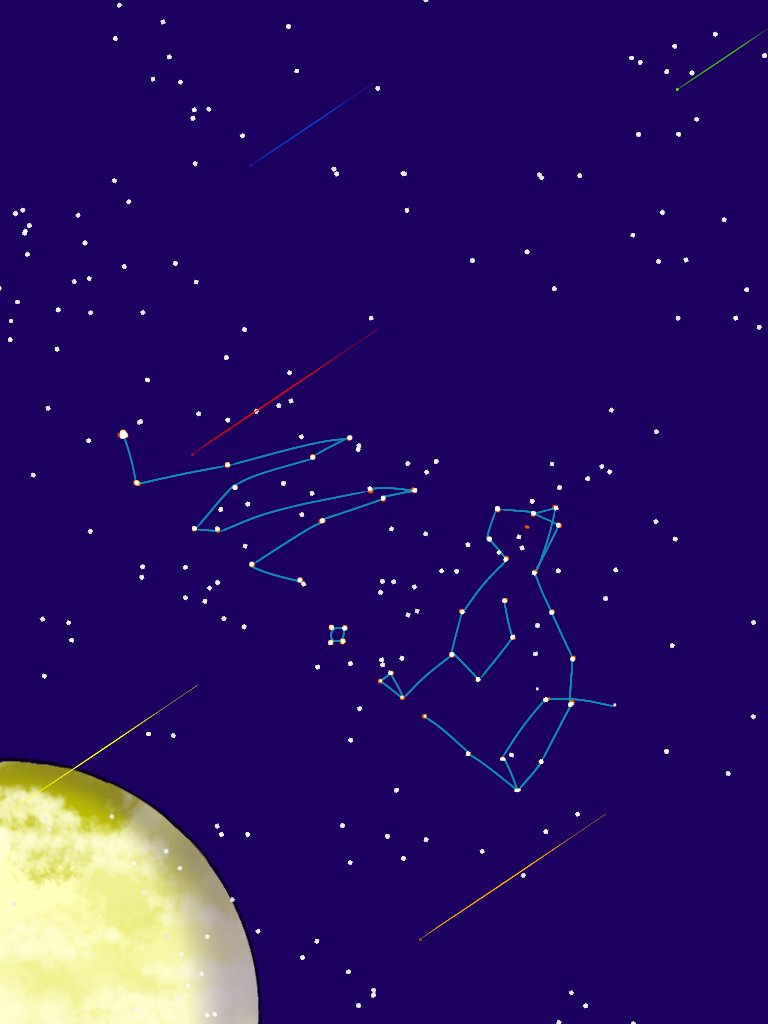 1枚目は黒咲ユリアさん 2枚目は餃子和尚さん 3、4枚目はミヤネコさんを描きました。夜空を描くのは楽しいよね! #イラスト #今月描いた絵を晒そう