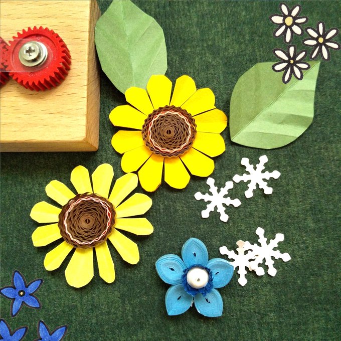 「Enjoy Summer」今日は暑い1日~もうすぐ夏が来ますね🌻 #ヒマワリ #ブルースター #クイリング #ペーパークイリング #ペーパーアート #ペーパークラフト #ペーパーフラワー #KuruKuruQuilling