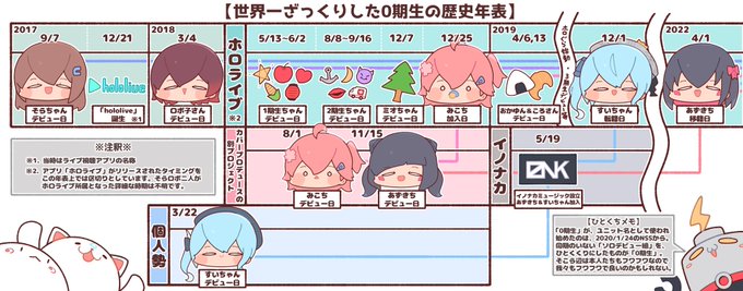 「0期生って結局どういう集まりなの?」 「同期なの?」「始まりの5人ってコト!?」 と聞かれた時にざっくりと説明できる年表を作ってみました。参考程度にご活用下さい🙇 #soraArt #ロボ子Art #miko_Art #ほしまちぎゃらりー #AZKiART