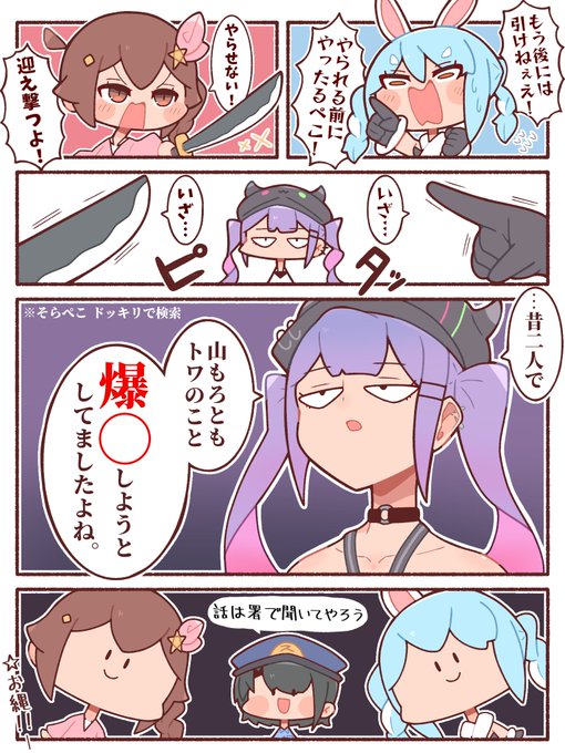 5コマで決着するホロ鯖三大勢力。 #soraArt #プロテインザスバル #ぺこらーと #TOWART