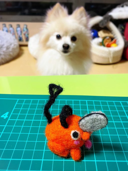 1 17 久々にチクチクっとな( *¯ ꒳¯*) レン爺さん悪魔と契約するの巻 #チェンソーマン #ポチタ #ポメラニアン #羊毛フェルト 22/11/19 18:22